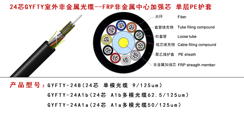 24芯GYFTY非金屬光纜具有良好的機械性能和溫度性能
