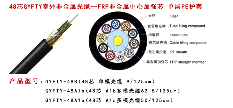 48芯GYFTY非金屬光纜具有良好的機械性能和溫度性能